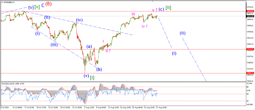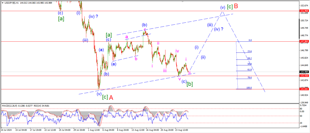 Wave ‘c’ of (b) is very close to hitting the final high for the pattern this evening.