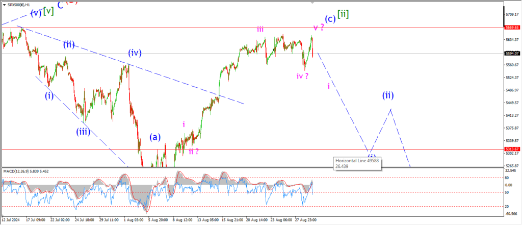 Watch for wave ‘i’ of (i) to drop back below 5500 in a five wave pattern.