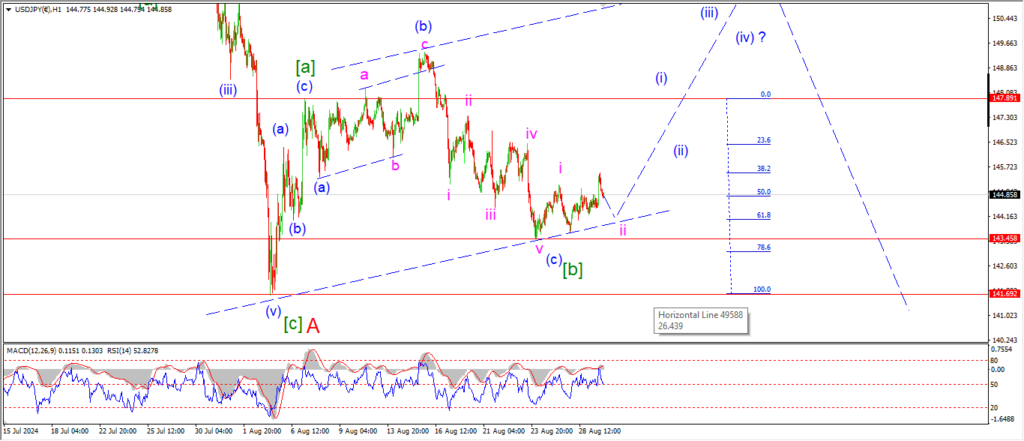 Wave ‘iii’ of (i) must continue higher to hit the wave [a] highs near 147.90.