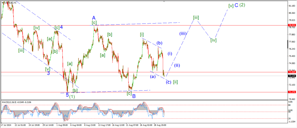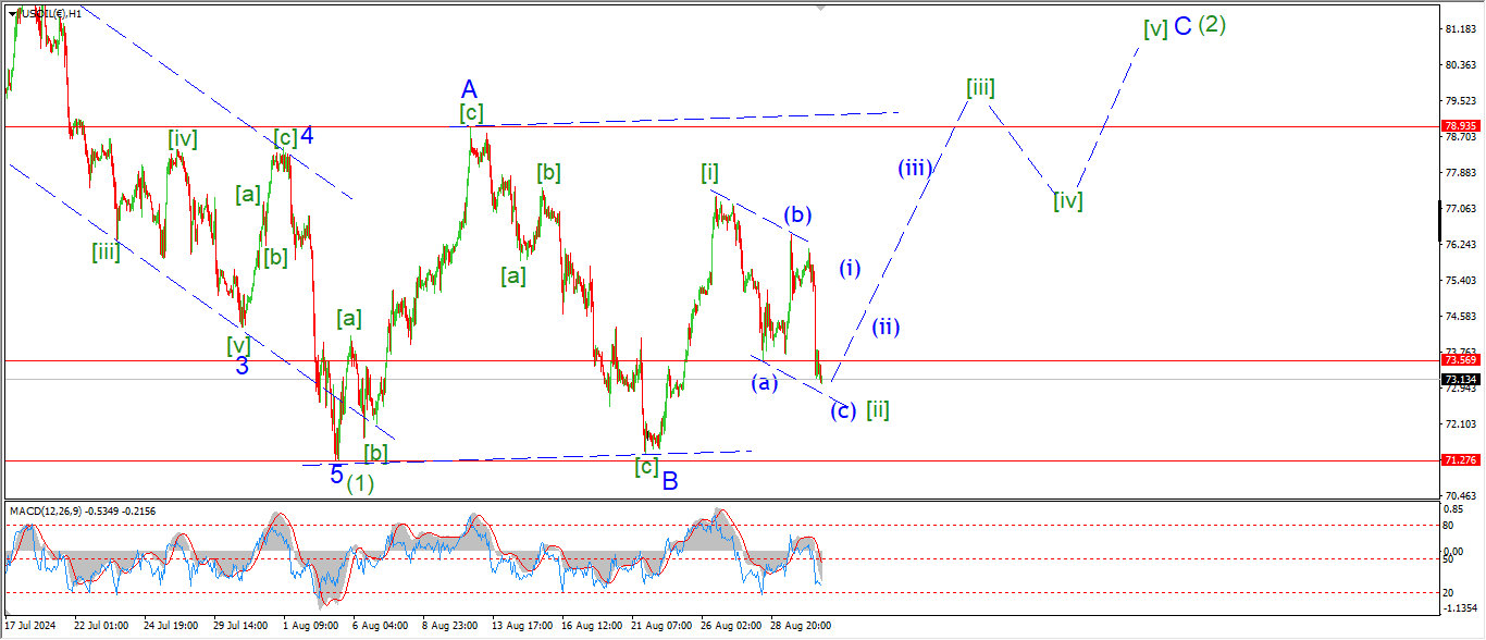 Wave [ii] is still in force here and the price is tracing out a larger three wave pattern to form a higher low.