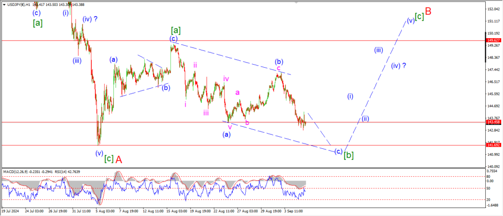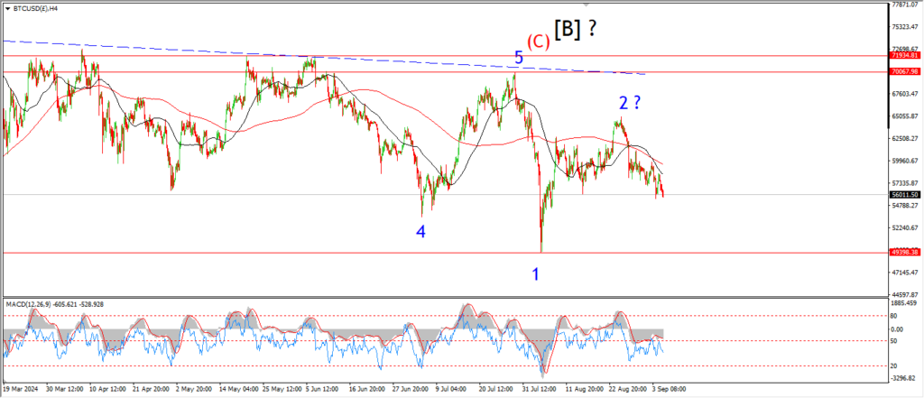 On the 4hr chart I have shown a possible contracting triangle pattern for wave ‘B’.