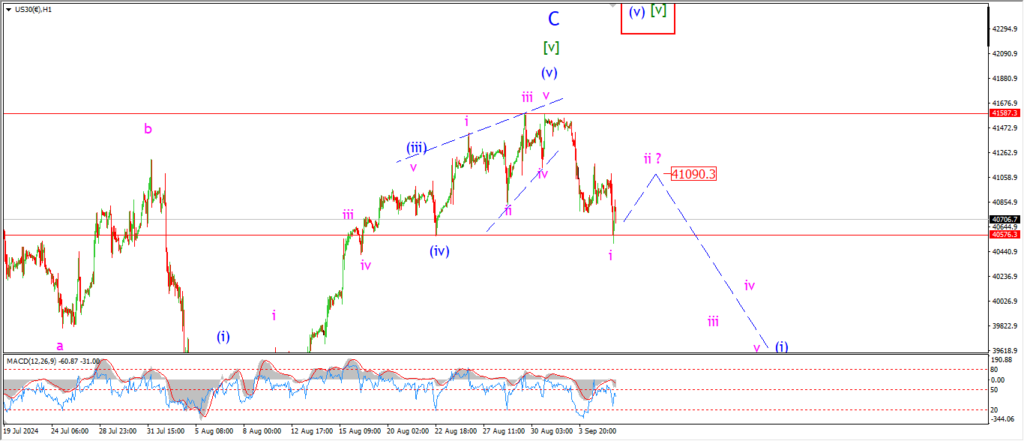 Watch for wave ‘ii’ to correct higher in three waves to top out at about 41000.
