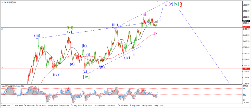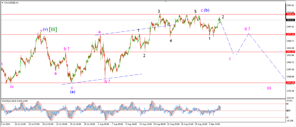 Watch for wave ‘i’ to regain the momentum by turning lower towards 2430 again.