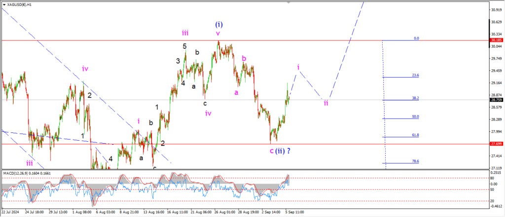 Watch for wave ‘i’ to complete five waves up near 29.50 as shown.