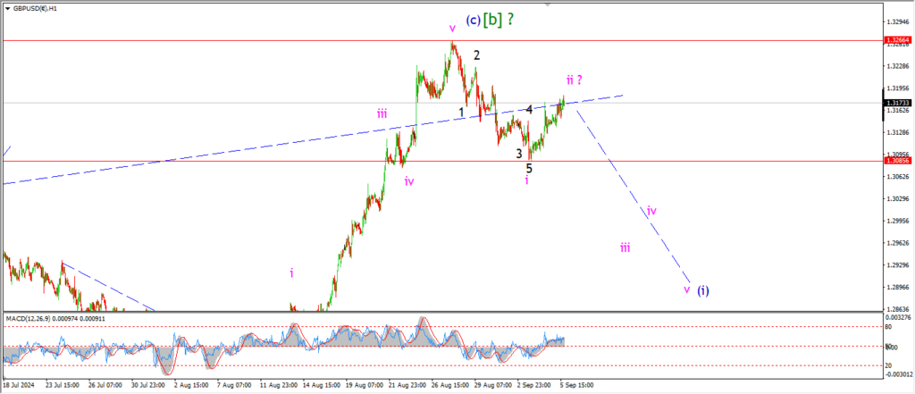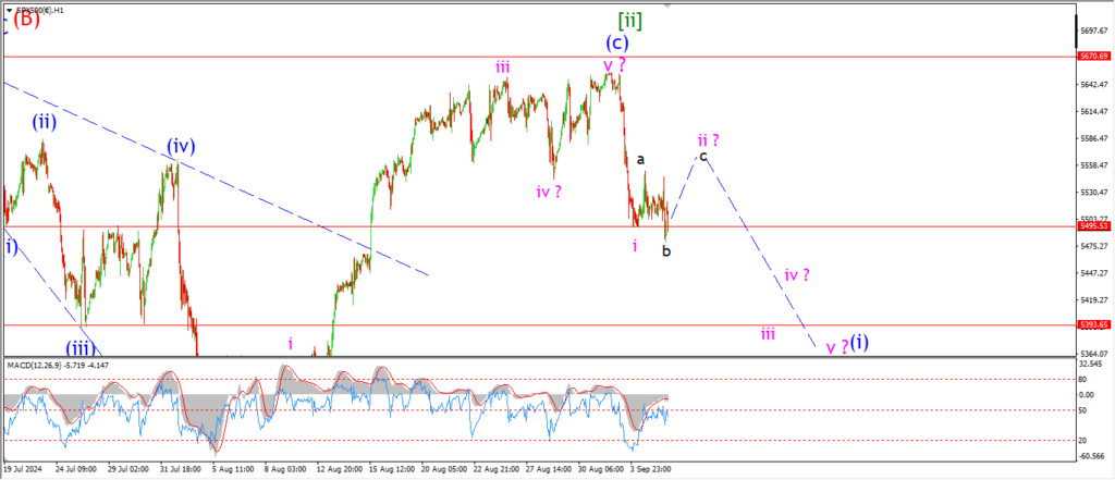 The hourly chart continues with the main count for an expanded flat wave ‘B’ correction.