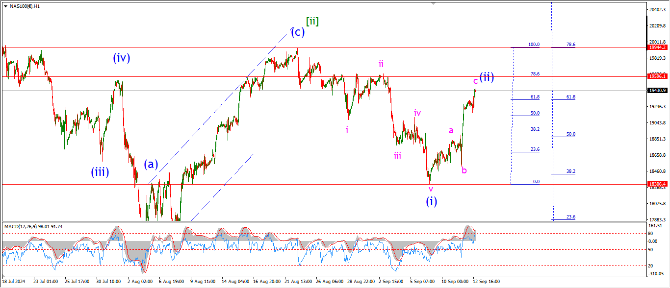 The price has reached the 78.6% retracement of the wave (i) decline at the session high.