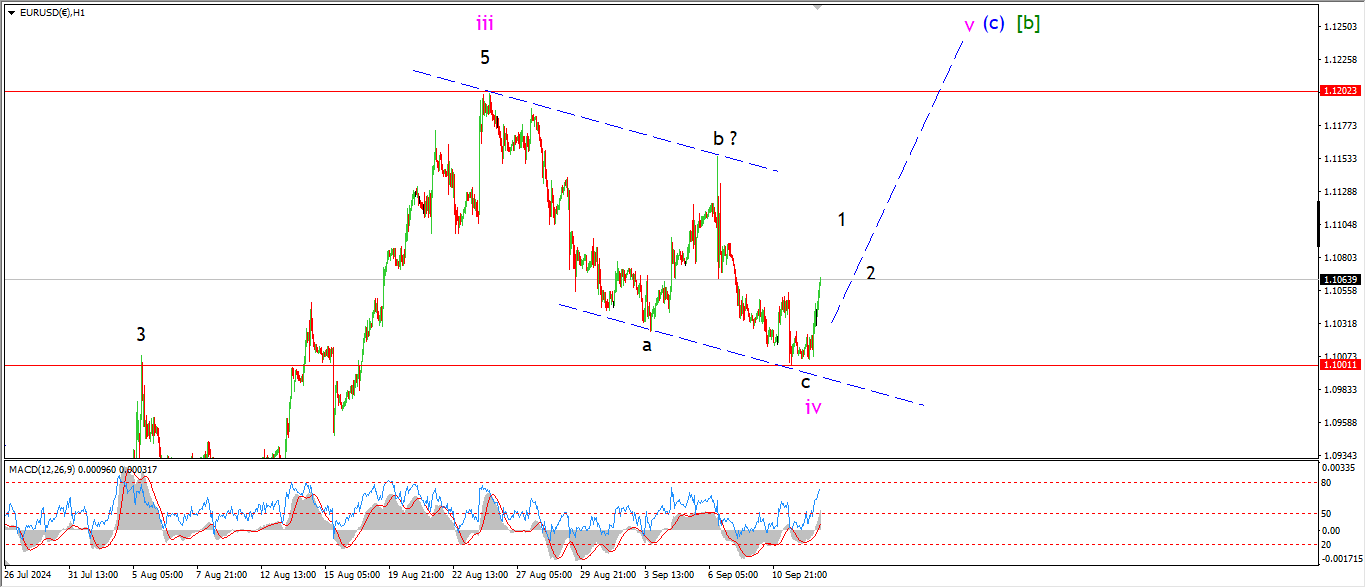 EURUSD has turned higher today which indicates that wave ‘iv’ is now complete at the weekly lows.