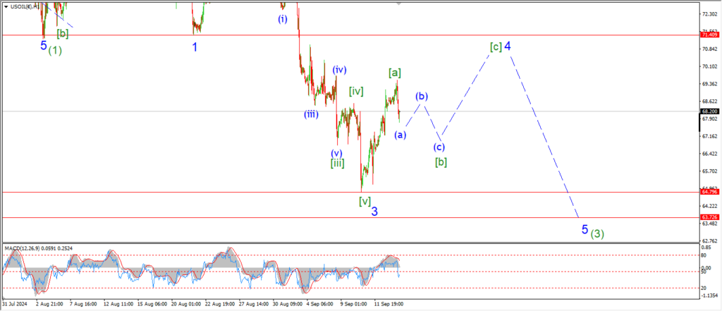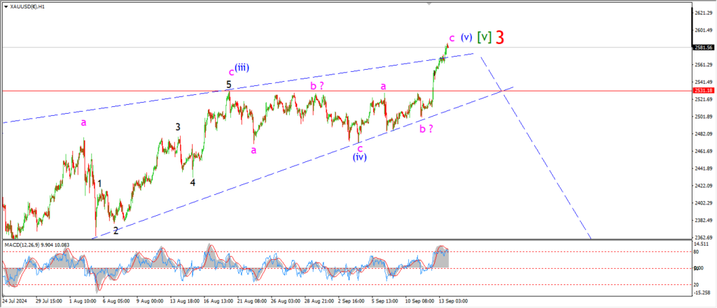 The price has traced out a five wave pattern in wave ‘c’ of ‘b’ at todays high,