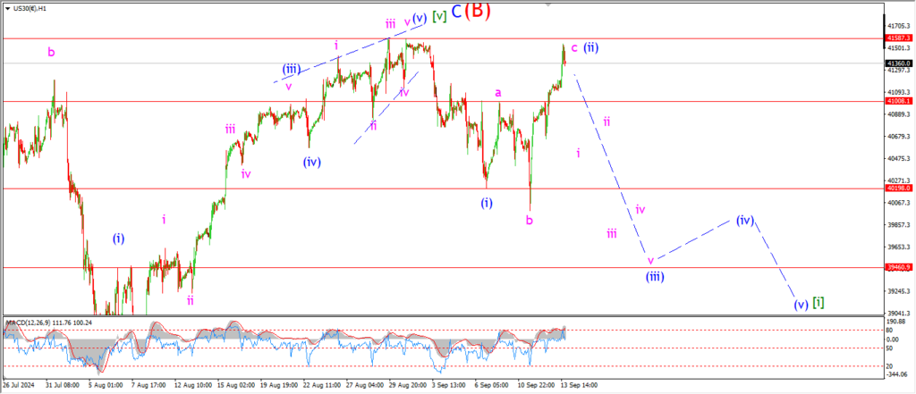 A sharp drop on Monday to break below 41000 again will signal wave ‘i’ of (iii) is underway.