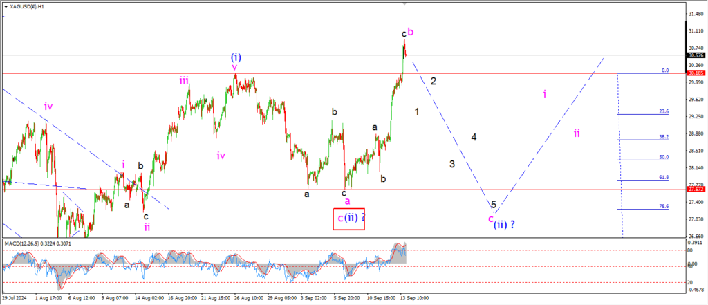 The price has broken to a new high in silver today but that has not broken the wave count I believe.