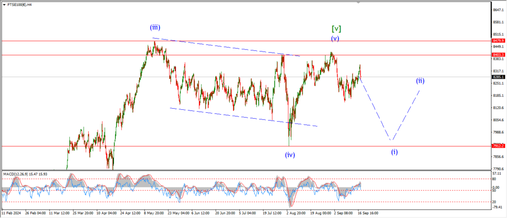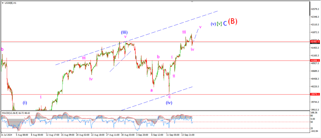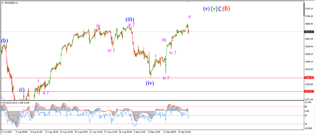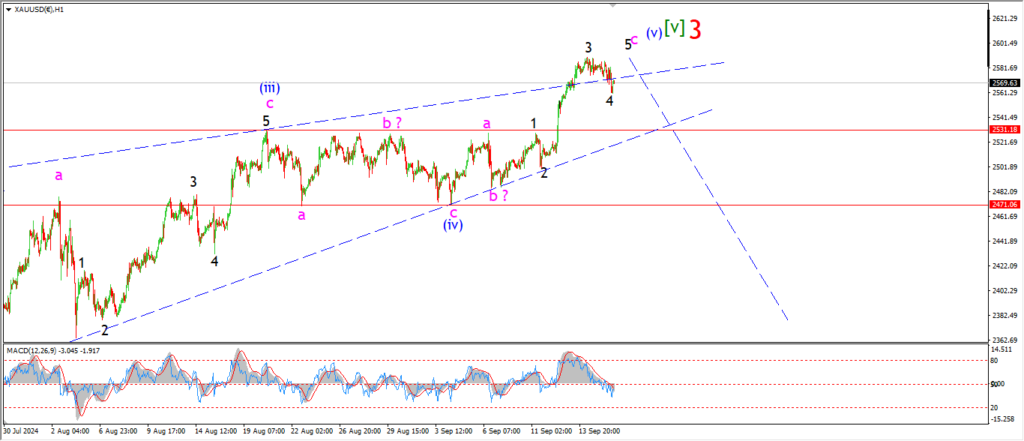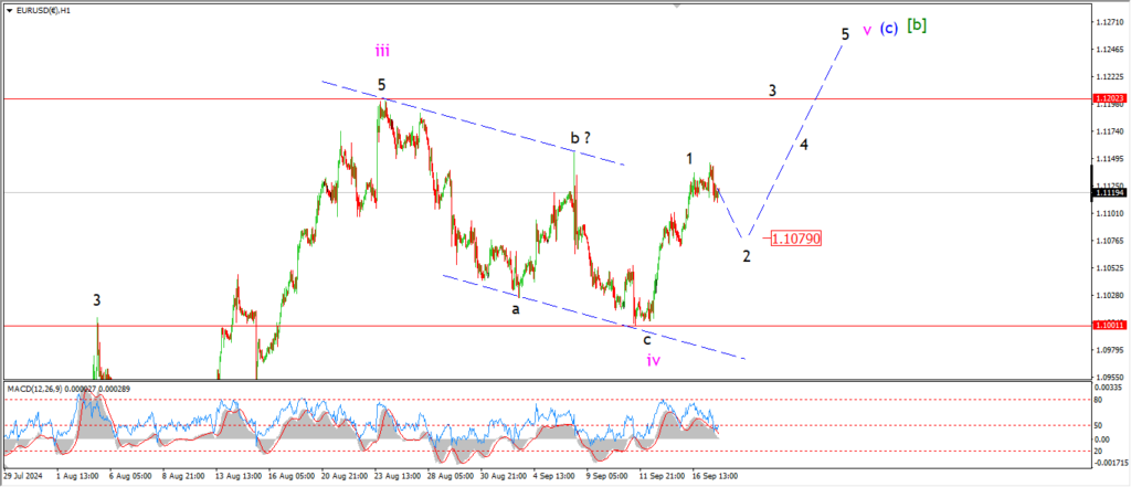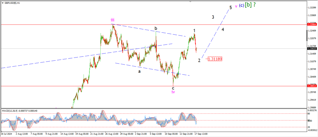 Cable turned down harder than EURUSD today but I am looking at this drop as wave ‘2’ of ‘v’ also.
