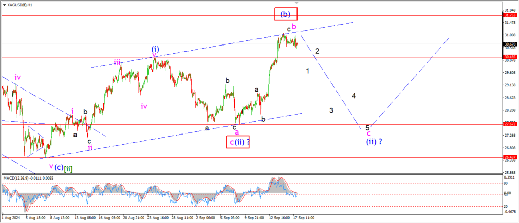 A five wave drop into wave ‘c’ of (ii) is expected to complete with a break of 27.60.