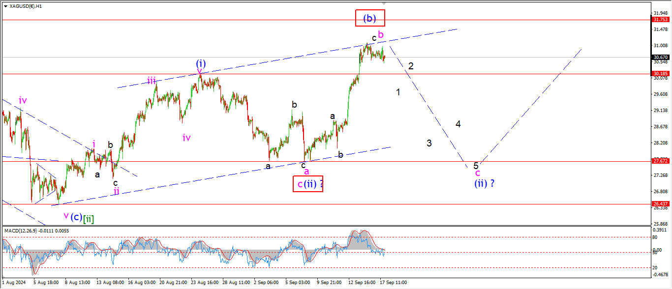 A five wave drop into wave ‘c’ of (ii) is expected to complete with a break of 27.60.