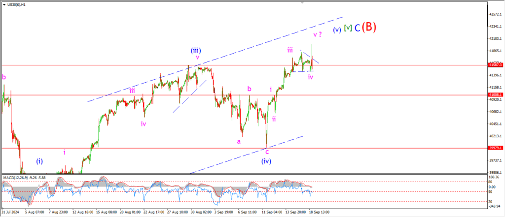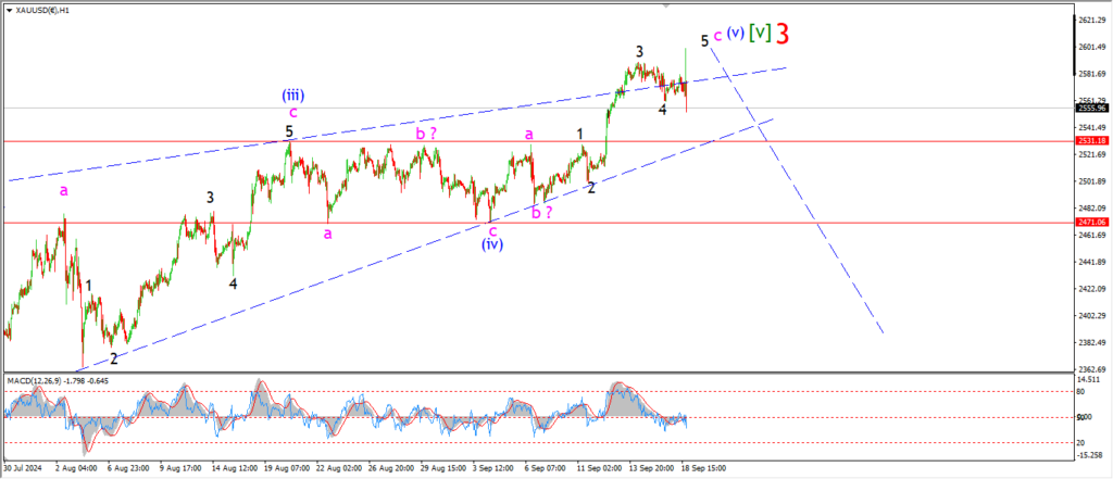 todays top has the potential to finish a five wave pattern in wave ‘c’.