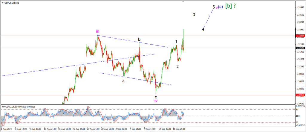 Wave ‘3’ of ‘v’ has broken the initial target for wave ‘v’ at 1.3266 this evening.