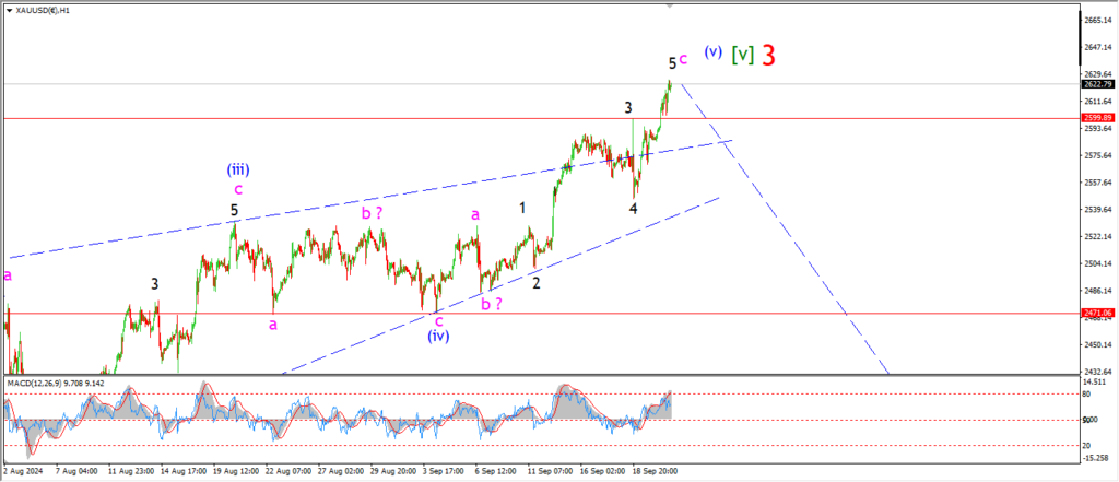 There is now a clear extended five wave pattern in place for wave ‘c’ of (v).