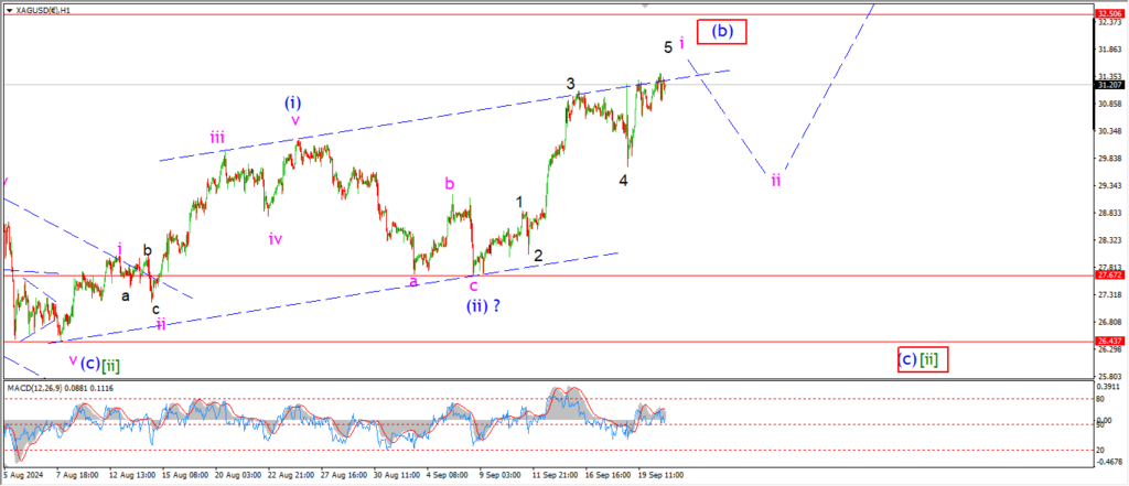 Gold is also holding up in wave ‘c’ of (v) at the end of another week.