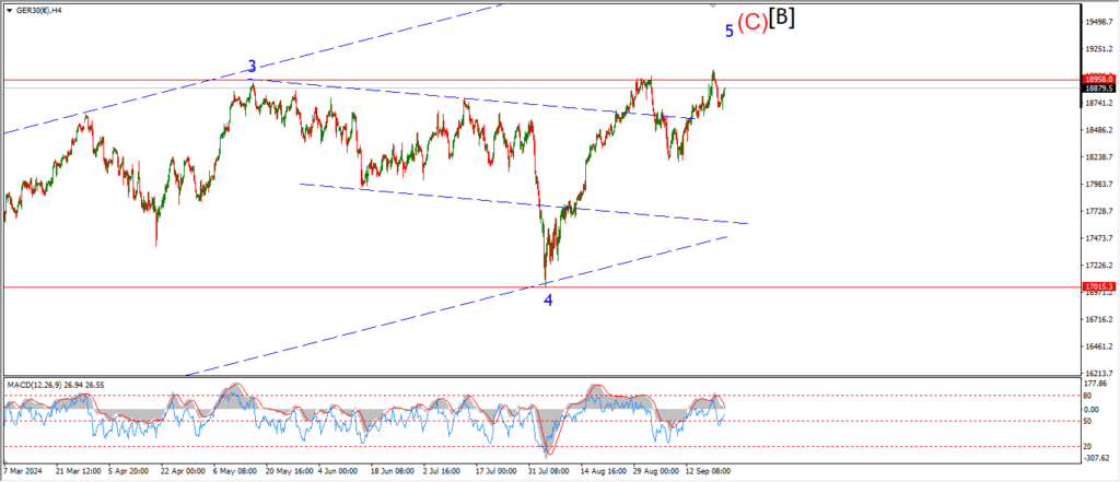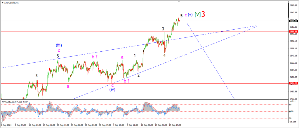 We will see tomorrow if there is a reaction off the upper trend line as wave ‘5’ completes,