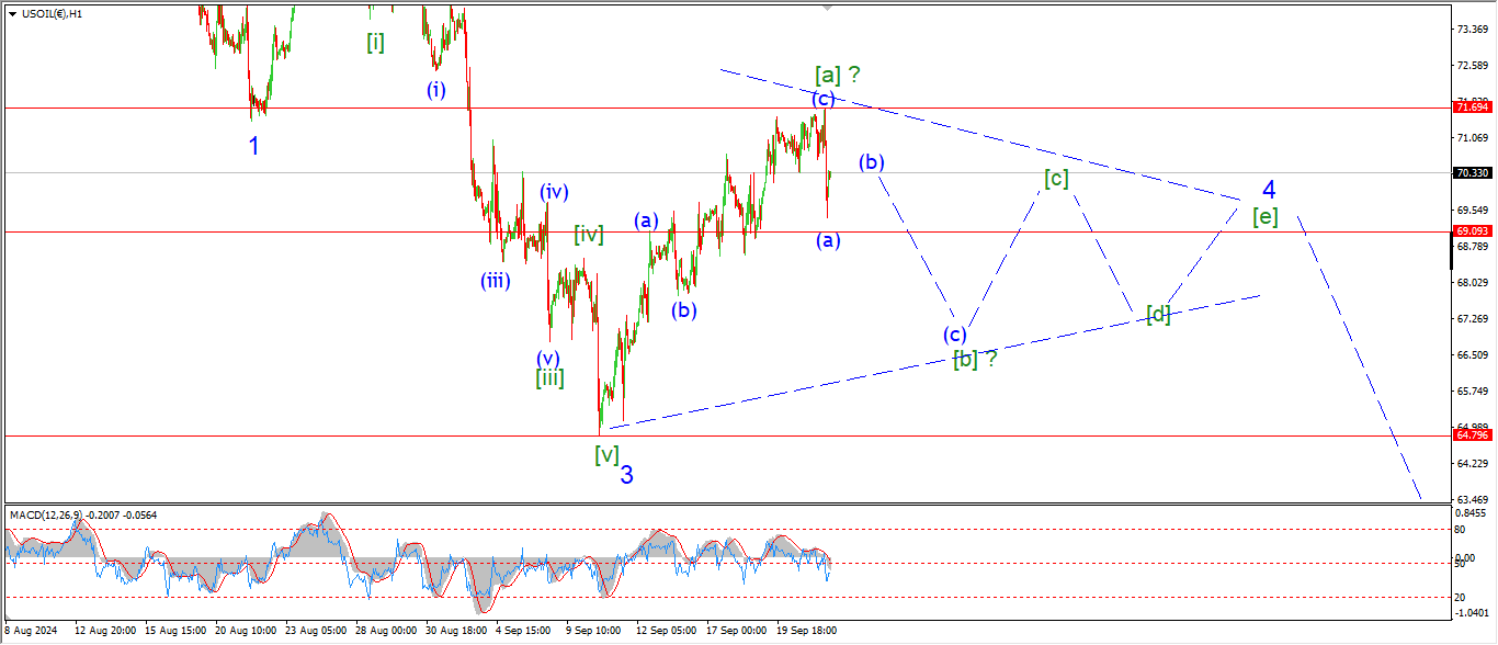Crude oil dropped out of Fridays highs today and that suggests wave [a] of ‘4’ is now done at 71.69.
