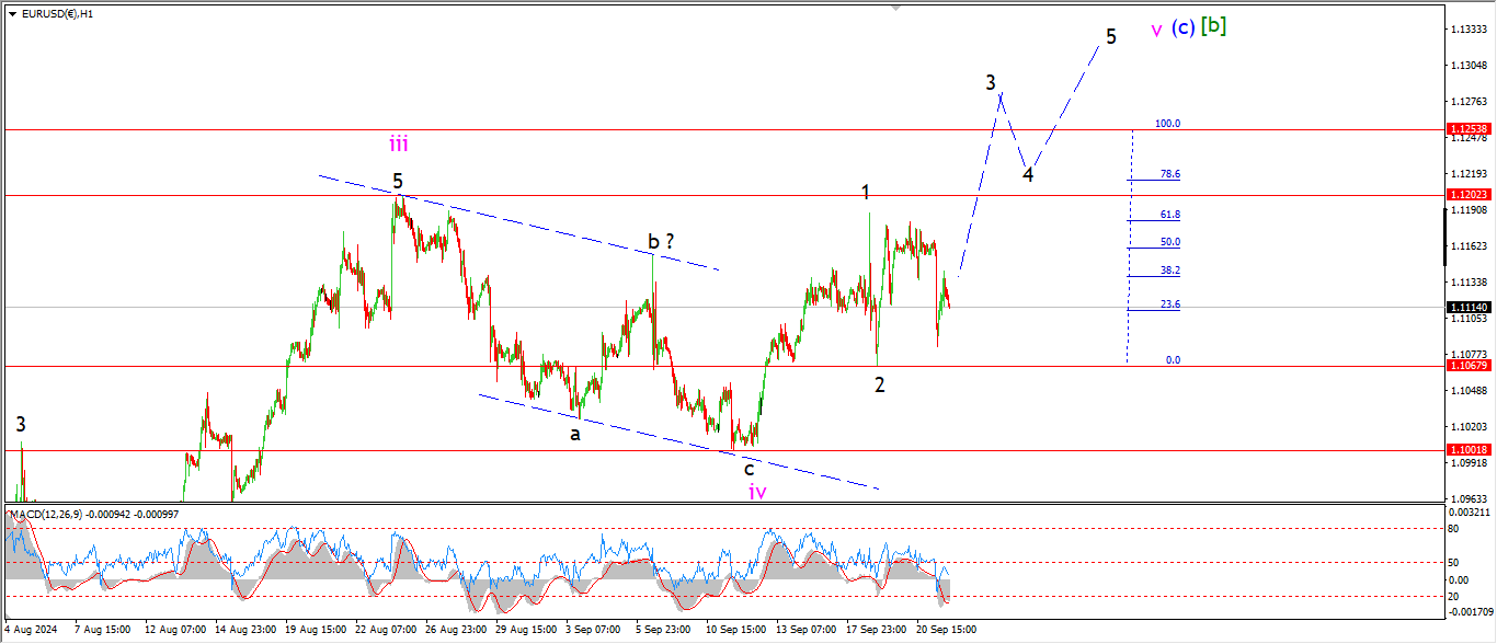 Watch for 1.1068 to hold and wave ‘3’ of ‘v’ to continue higher as shown.