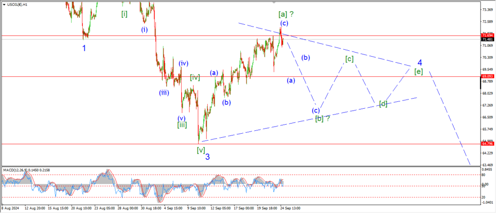 The action over the last week completed a triangle wave ‘4’ at todays lows.