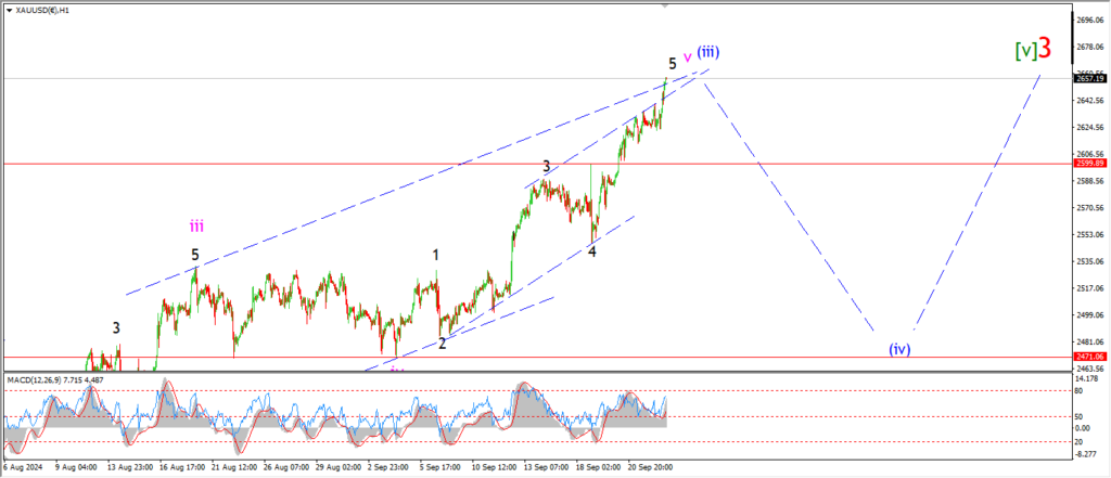 This pattern implies we will see a correction into wave (iv) blue over the coming week.
