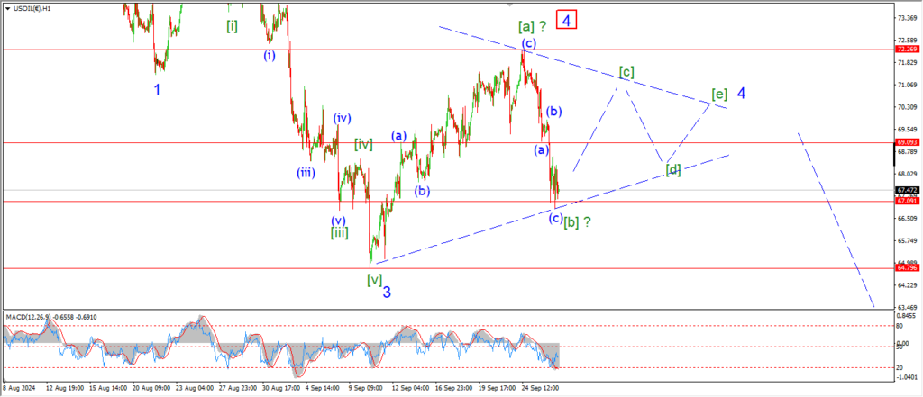 Crude turned lower hard today and the price hit the target level for wave [b] already,