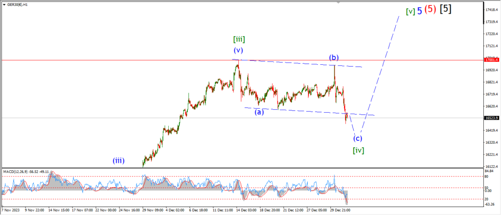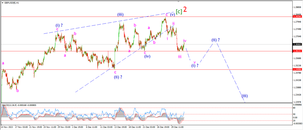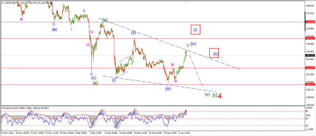 USDJPY has completed three waves up in wave (iv) now and wave ‘c’ has extended a little higher today as suggested.