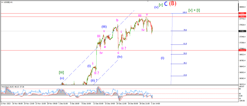 I am looking at the support at 37000 as the level that will signal wave (i) is underway,