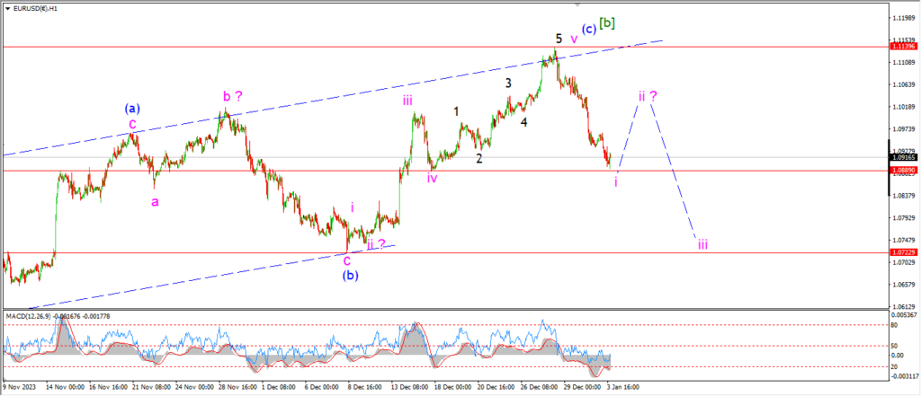 Watch for a break of 1.0889 as wave ‘i’ completes.