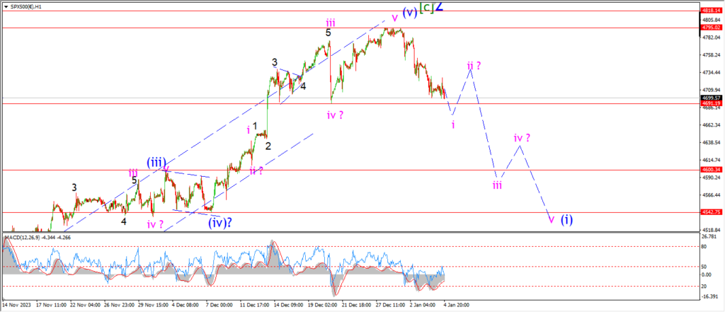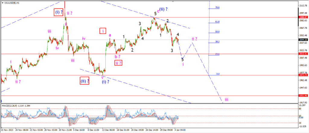 I have marked todays high as a possible wave ‘4’ of ‘i’.