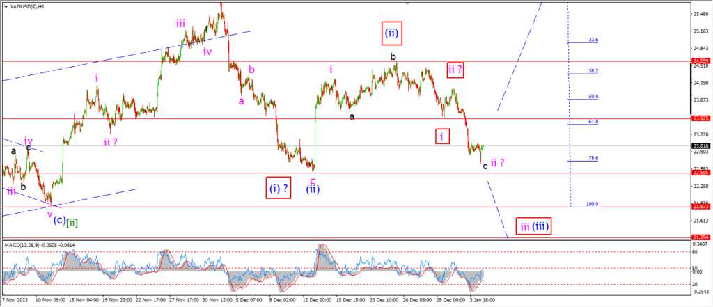 A break of 22.50 will force a rethink of the wave ‘ii’ pattern.