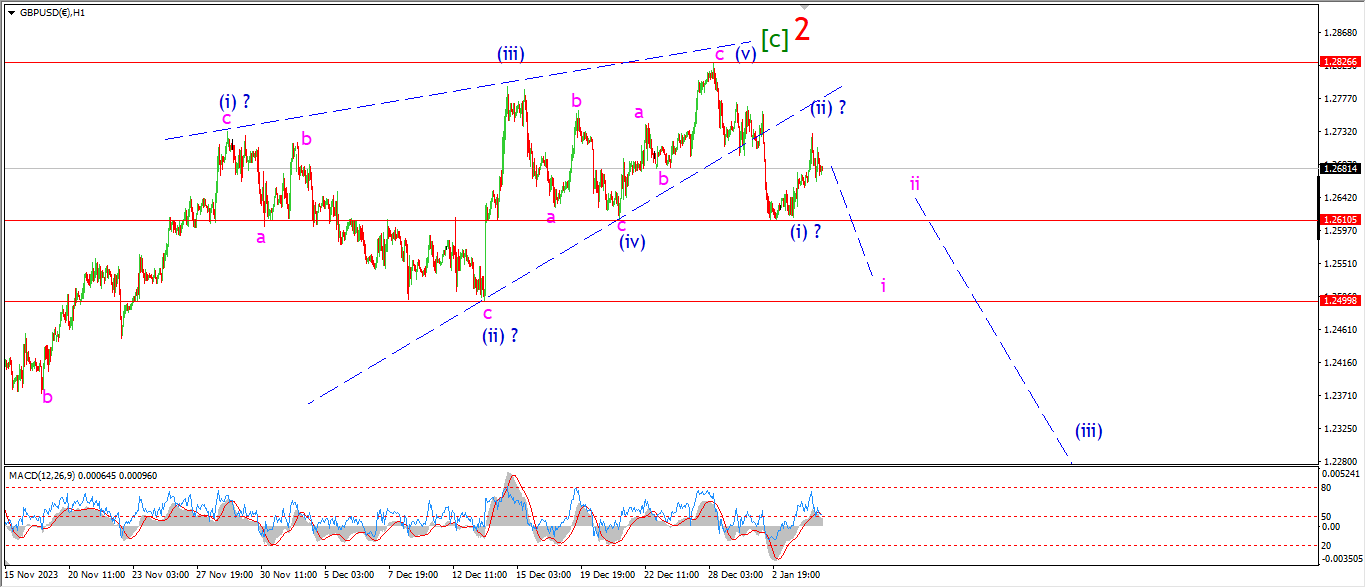 Watch for wave ‘i’ of (iii) to turn lower and break 1.2610 again.