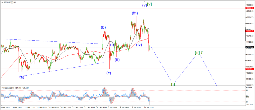 The price has dropped off the top of wave ‘i’ in three wave now.