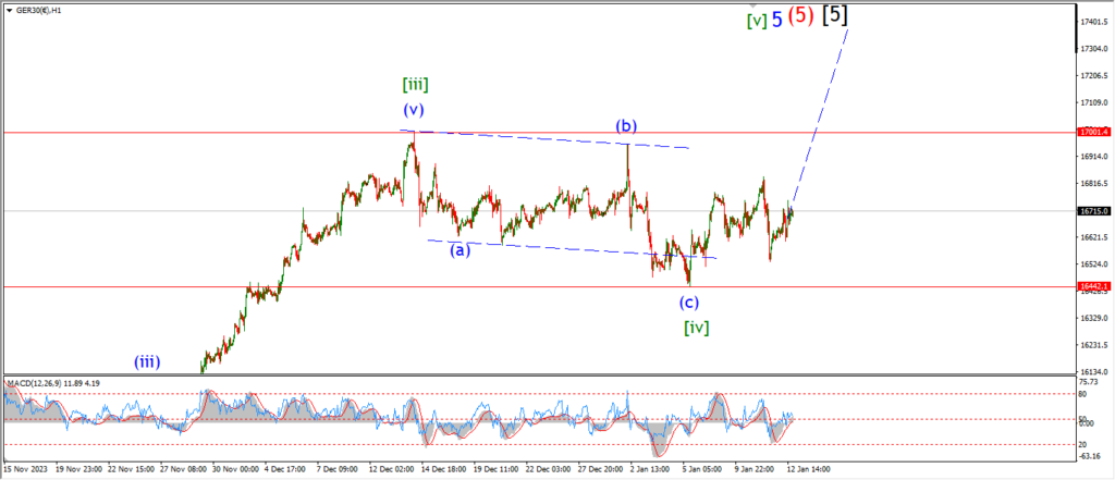 Wave ‘i’ is counte3d a little different with a triangle forming wave ‘4’ and wave ‘5’ dropping to this weeks low.