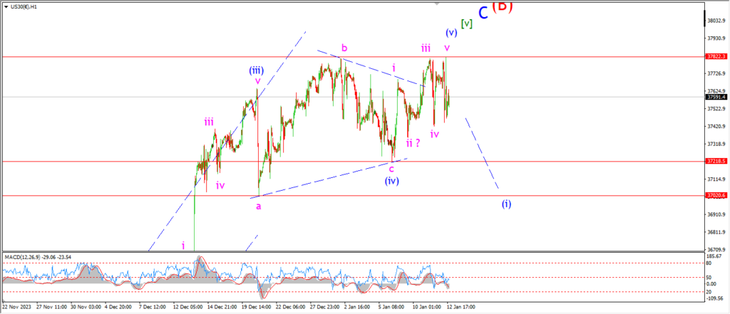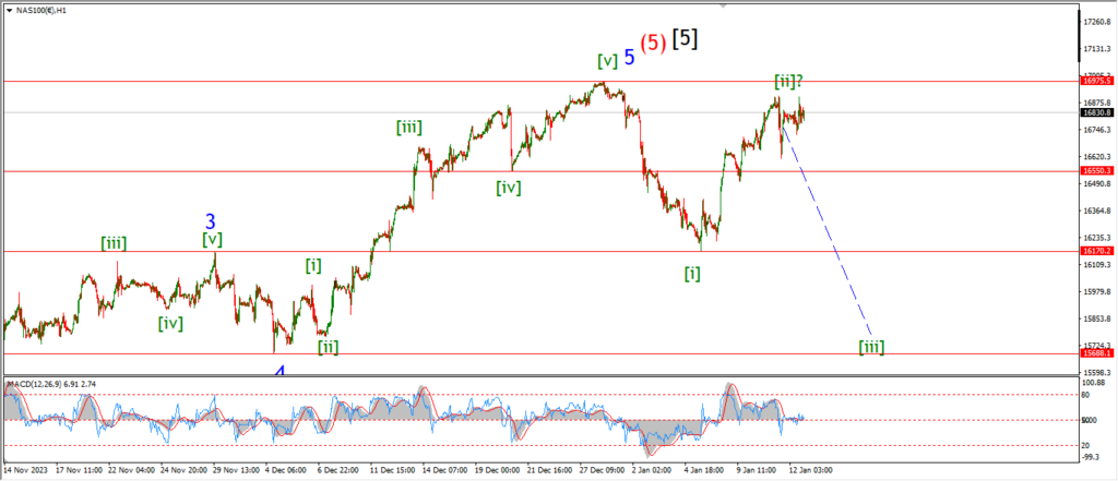 The pattern needs to be confirmed on Monday with a drop into wave ‘iii’ down as shown.