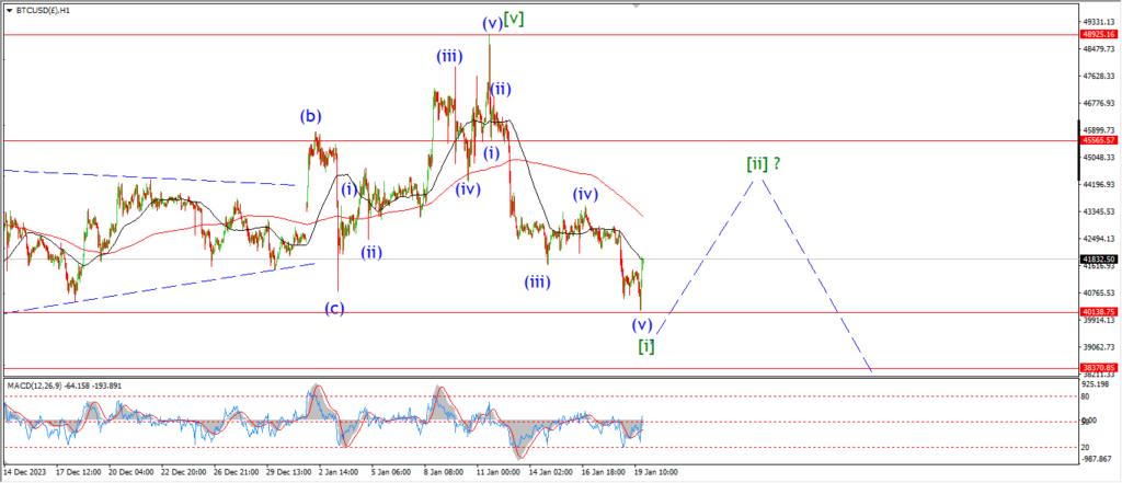 Once wave ‘iii’ completes I will be looking for a larger correction into wave ‘iv’ as shown.