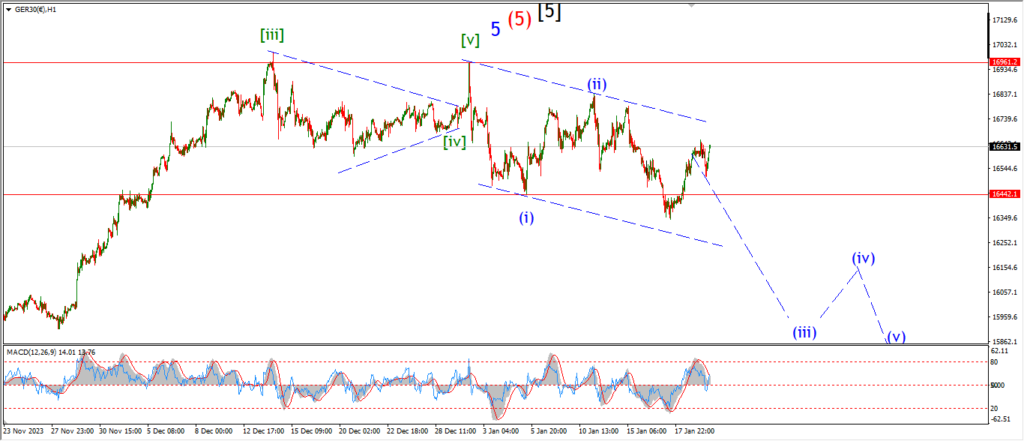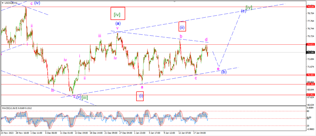 Wave ‘d’ did top out this evening and it stopped below the previous high at wave ‘b’.