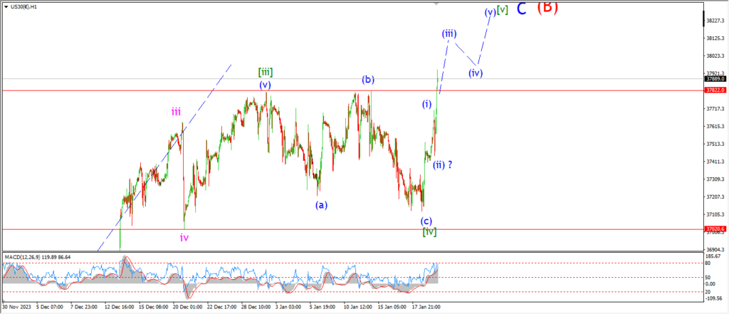 Watch for wave [v] to continue higher and top out with a break above 38000 later next week.