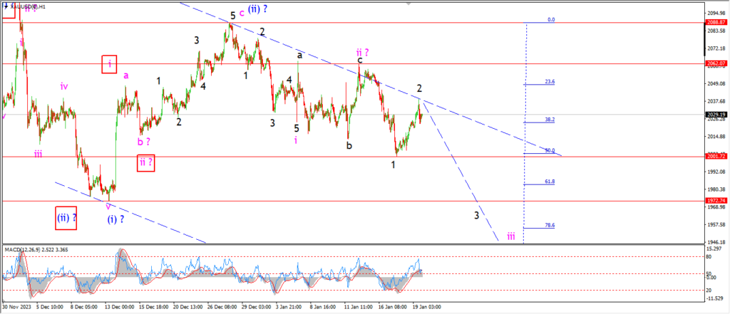 wave ‘3’ of ‘iii’ will be confirmed with a break below 2001.