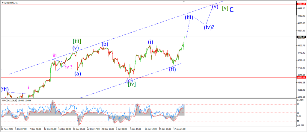 The hourly chart shows a wild rally this evening in a possible wave (iii) of [v].