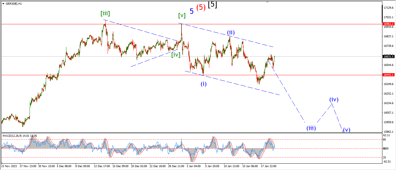 The hourly chart shows a wild rally this evening in a possible wave (iii) of [v].