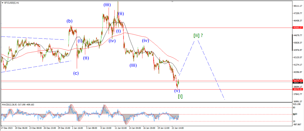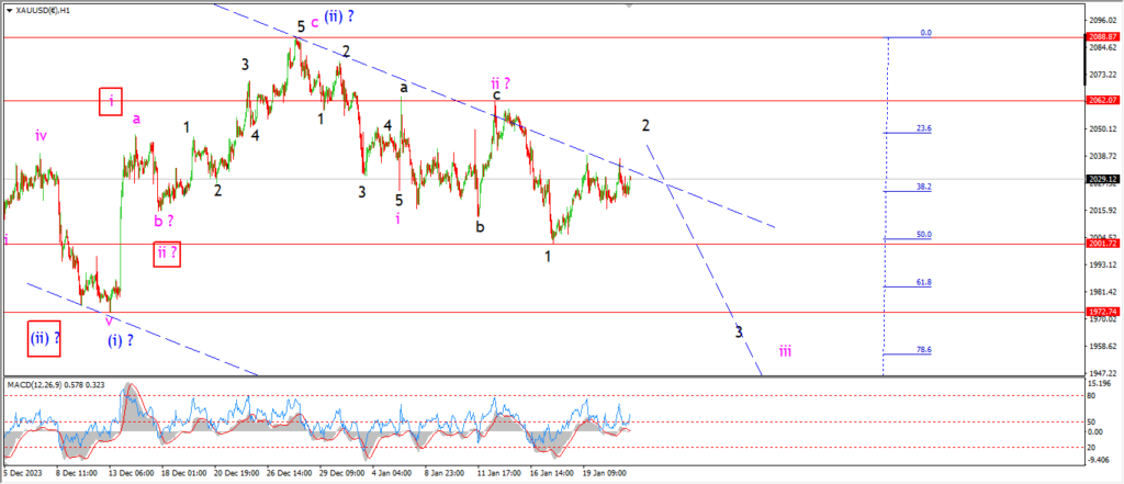 then we should see a five wave pattern lower into wave ‘iii’ for the rest of this week.