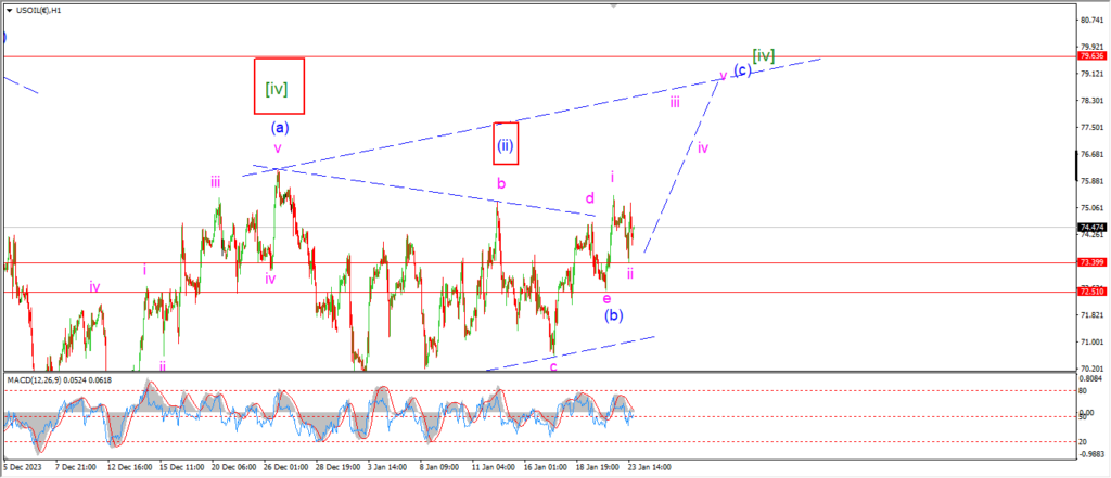 If wave ‘ii’ holds at 73.40, then we should continue to see a five wave rally in wave ‘iii’ for the rest of the week.