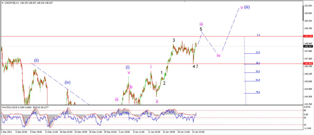 Watch for wave ‘iii’ of (iii) to complete in the area of 149.12.