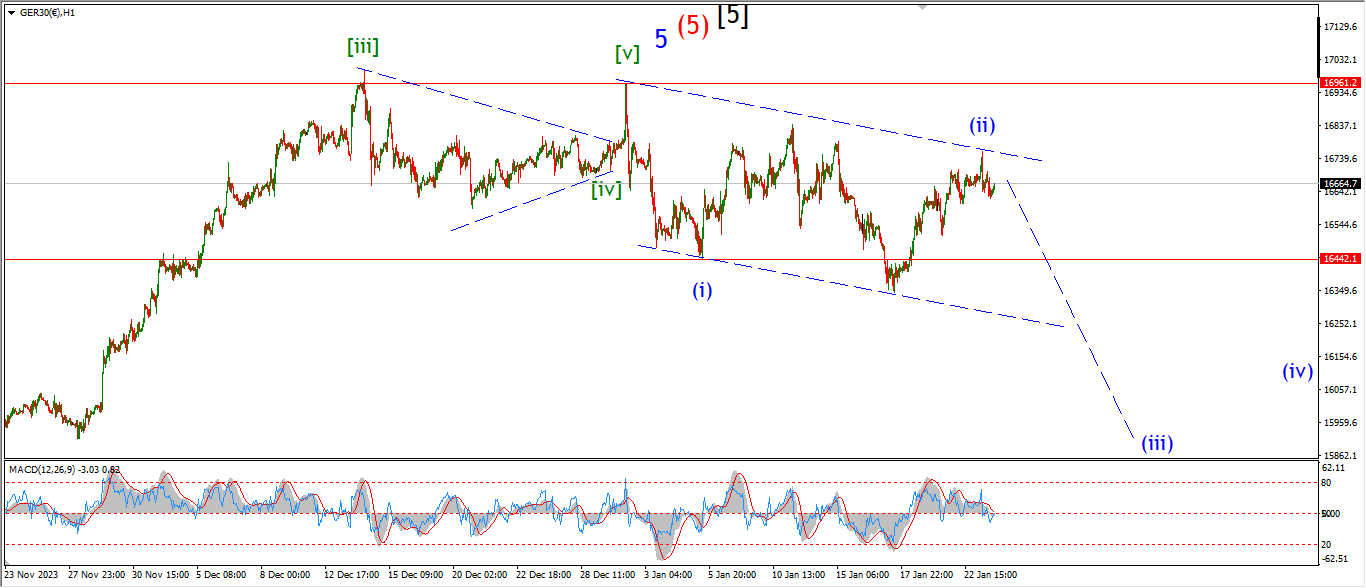 then we should see a five wave pattern lower into wave ‘iii’ for the rest of this week.