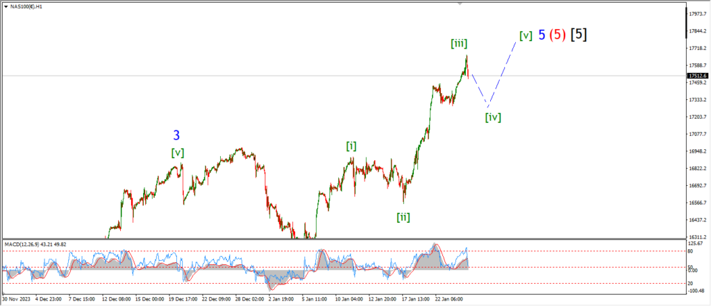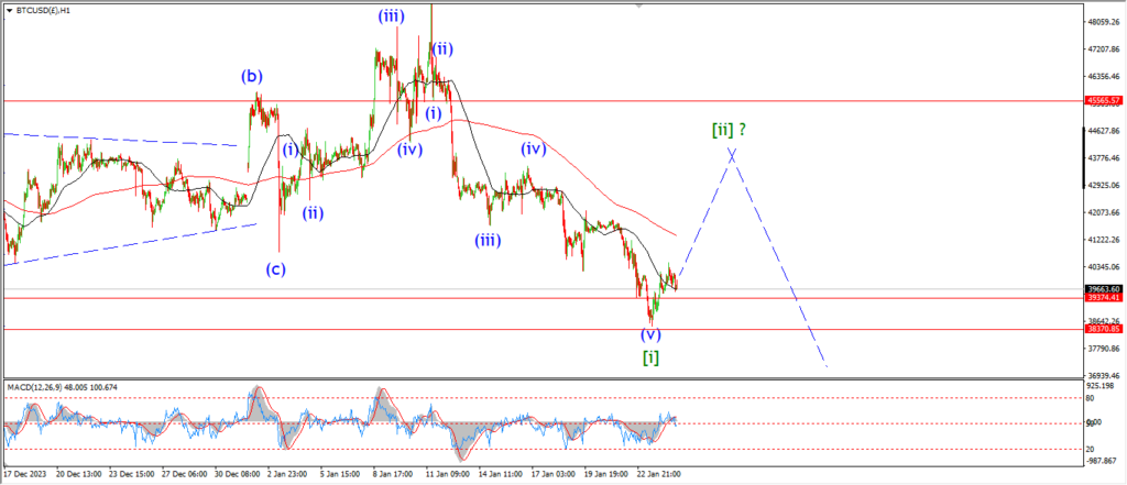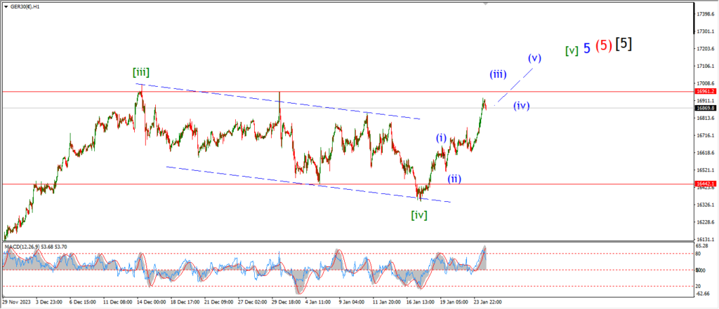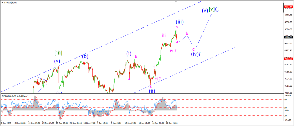 I will be looking for a move lower tomorrow to confirm wave ‘iii’ down though.