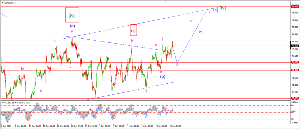 I am looking for wave ‘ii’ to drop back into 73.40 to complete wave ‘ii’ tomorrow.