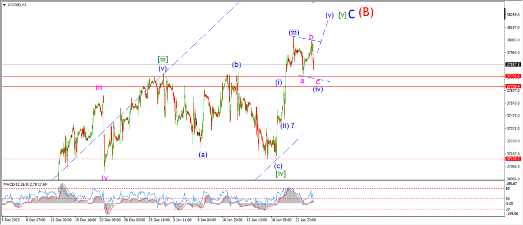Wave (iv) must hold above 37708 at the wave (i) high.
