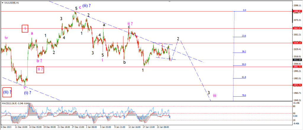 WAtch for the low at 2001 to hold and wave ‘2’ to complete three waves up with a break of 2039.